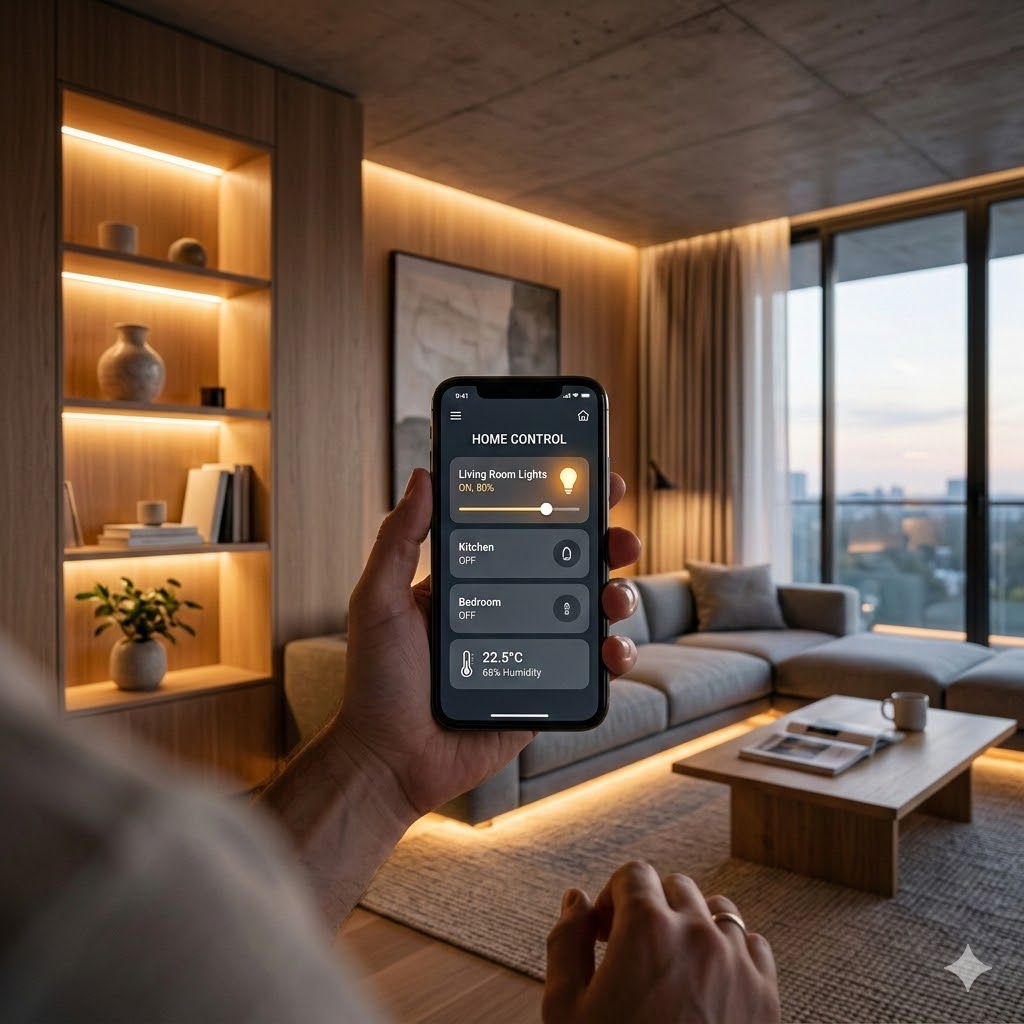 Smart lighting, climate control, security systems, and voice assistants create automated comfort.